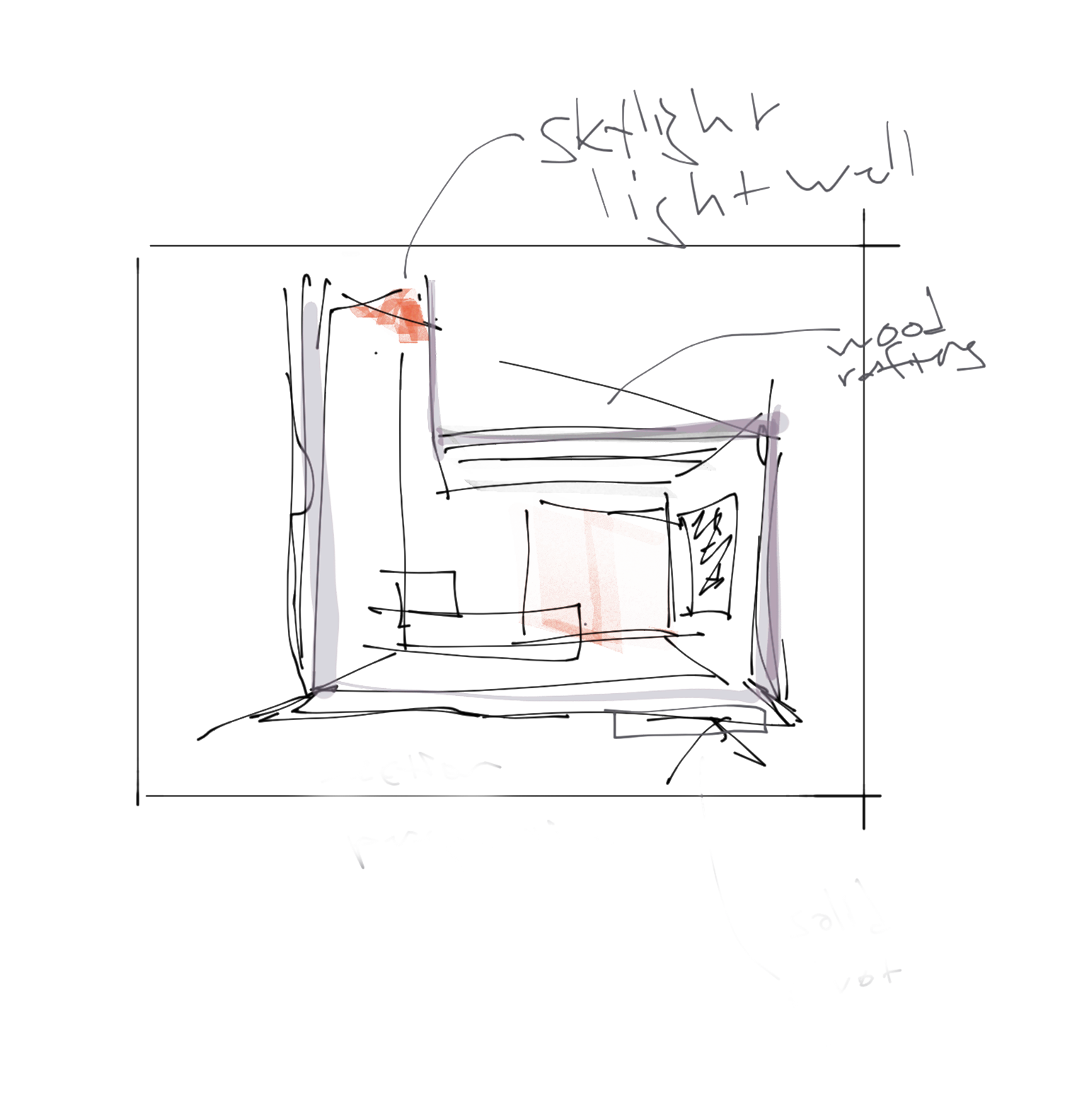 Envisioned as a serene retreat for both the client and her guests, this space draws inspiration from her love for sky-watching and tranquil moments spent in her backyard. During our first site visit, she spoke warmly of laying out a blanket to watch the clouds drift through tree branches—a simple joy that became the heart of the design. This project embraces that spirit of calm connection to nature, creating a modern space that invites moments of quiet reflection.